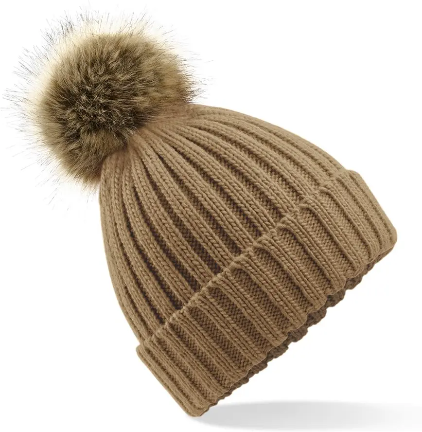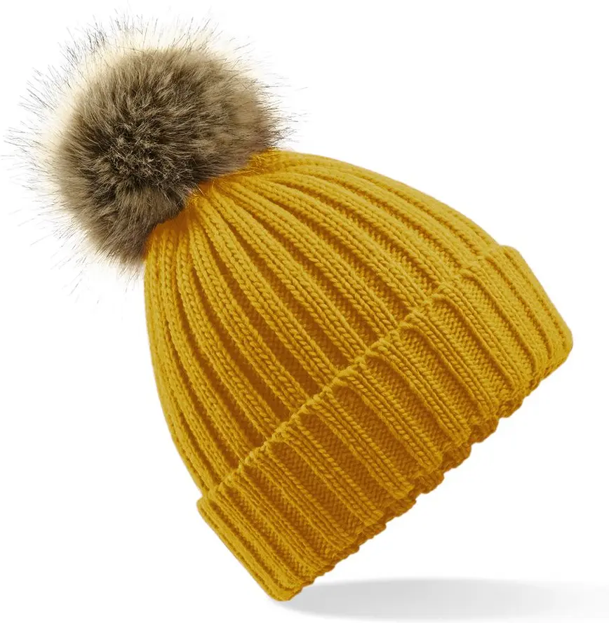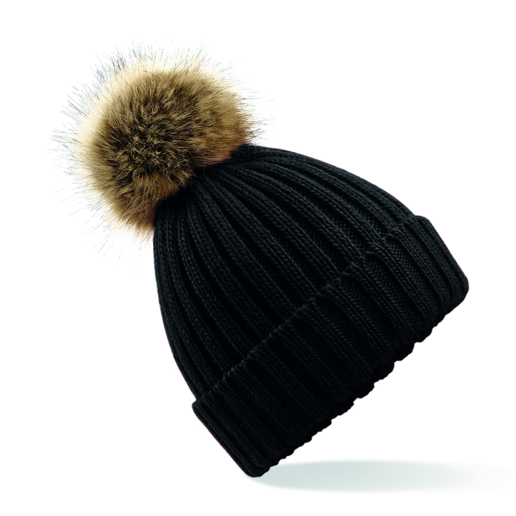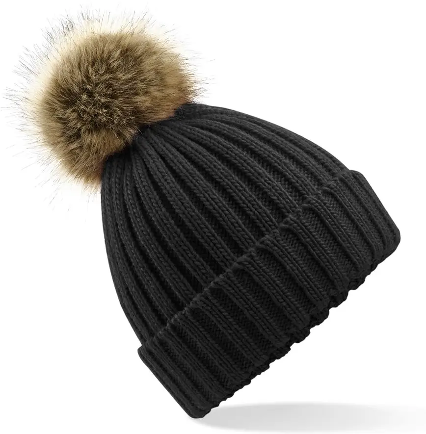 Beechfield Faux Fur Pop Pom Chunky Beanie