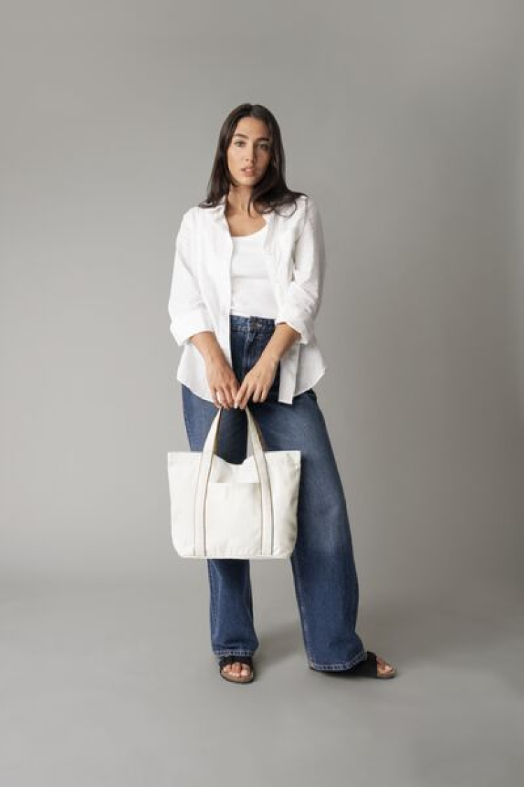 Kontrasztos színű részletek: 100% újrahasznosított pamutból