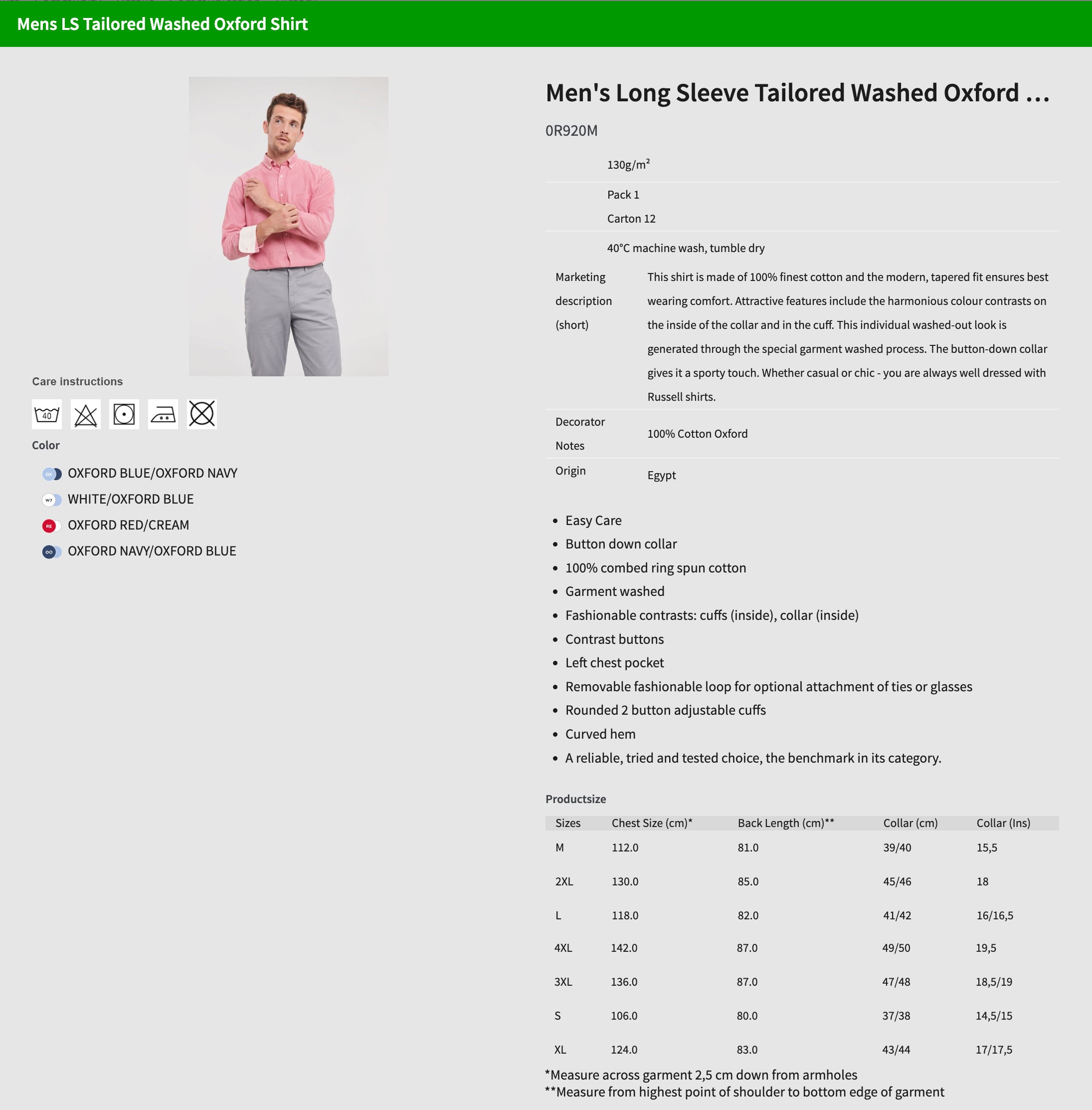 Russell Men's Long Sleeve Tailored Washed Oxford Shirt