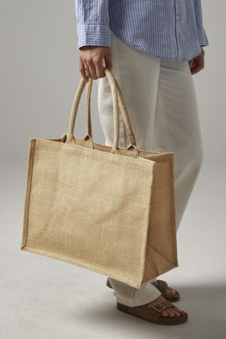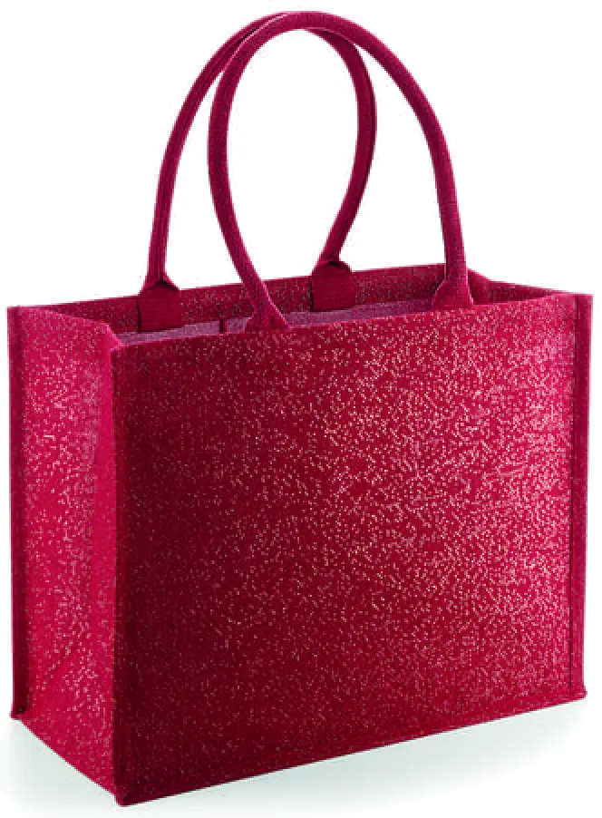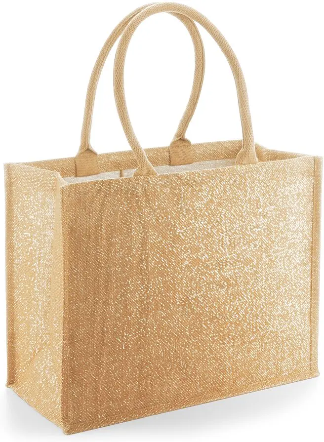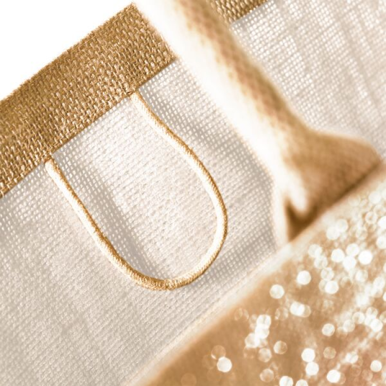 Ez a csillogós juta bevásárlótáska 98% laminált jutából és 2% metálszálból készült, így nemcsak strapabíró, de az aranyszínű csillogó száldíszítésnek köszönhetően rendkívül stílusos is. A táska ideális a mindennapi bevásárláshoz, céges ajándékcsomag összeállításához vagy akár egy elegáns kiegészítőként is szolgálhat.